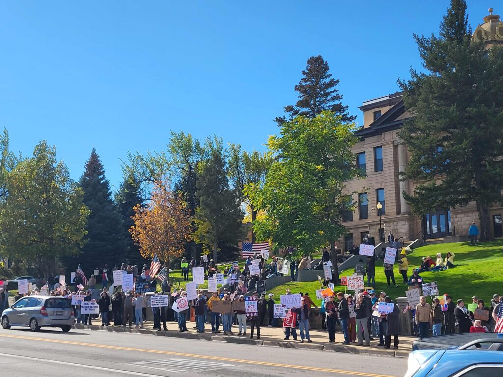 OCTOBER 18 2025 NO KINGS DAY – The community turned out hundreds strong at the Sheridan County courthouse on No Kings Day!  We the People serve no kings.  Let’s spell it out for fellow citizens, Signs of F-A-S-C-I-S-M lined Coffeen Avenue!!